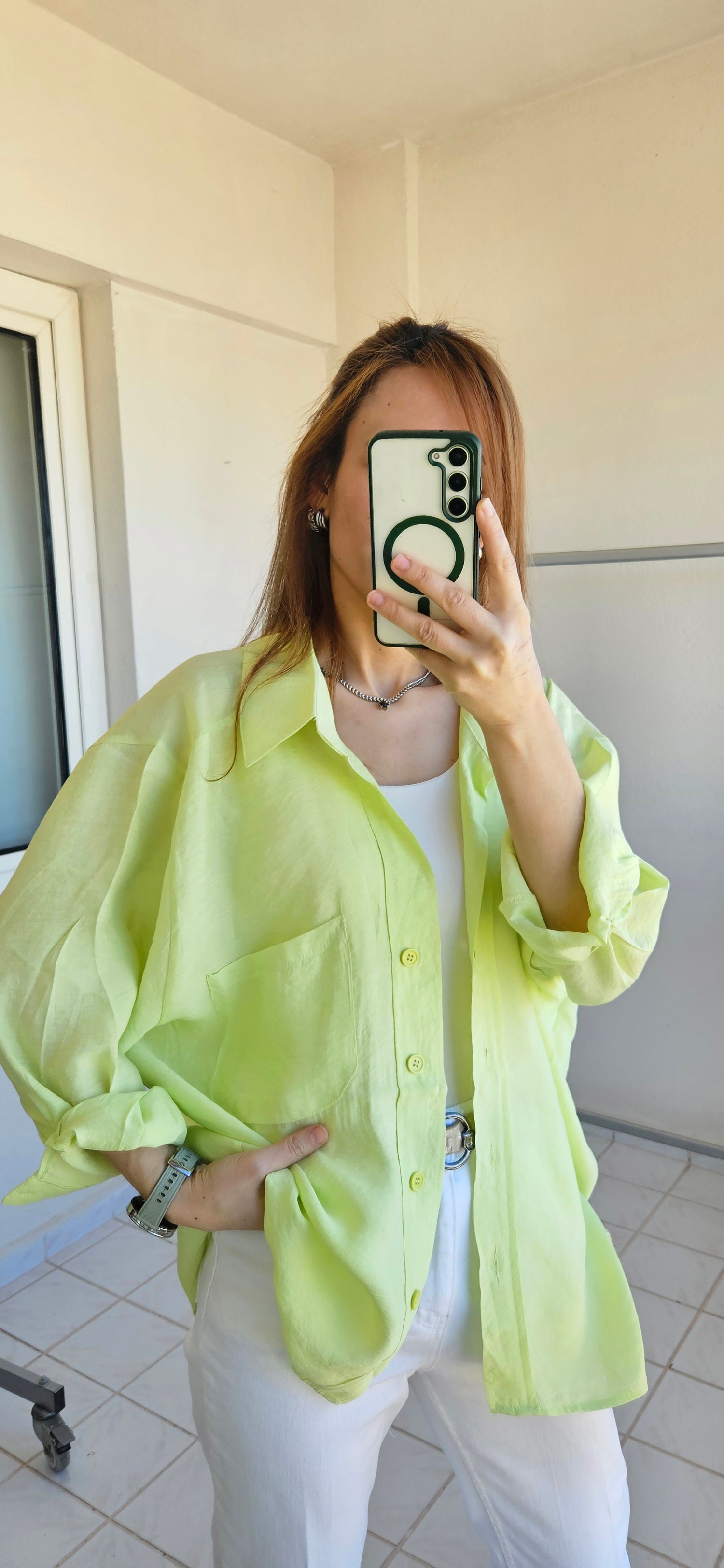 Tensel Dokulu Oversize Lime Yeşil Gömlek
