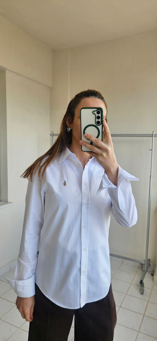 Orj. Marka Muadili Taşlı Poplin Beyaz Gömlek