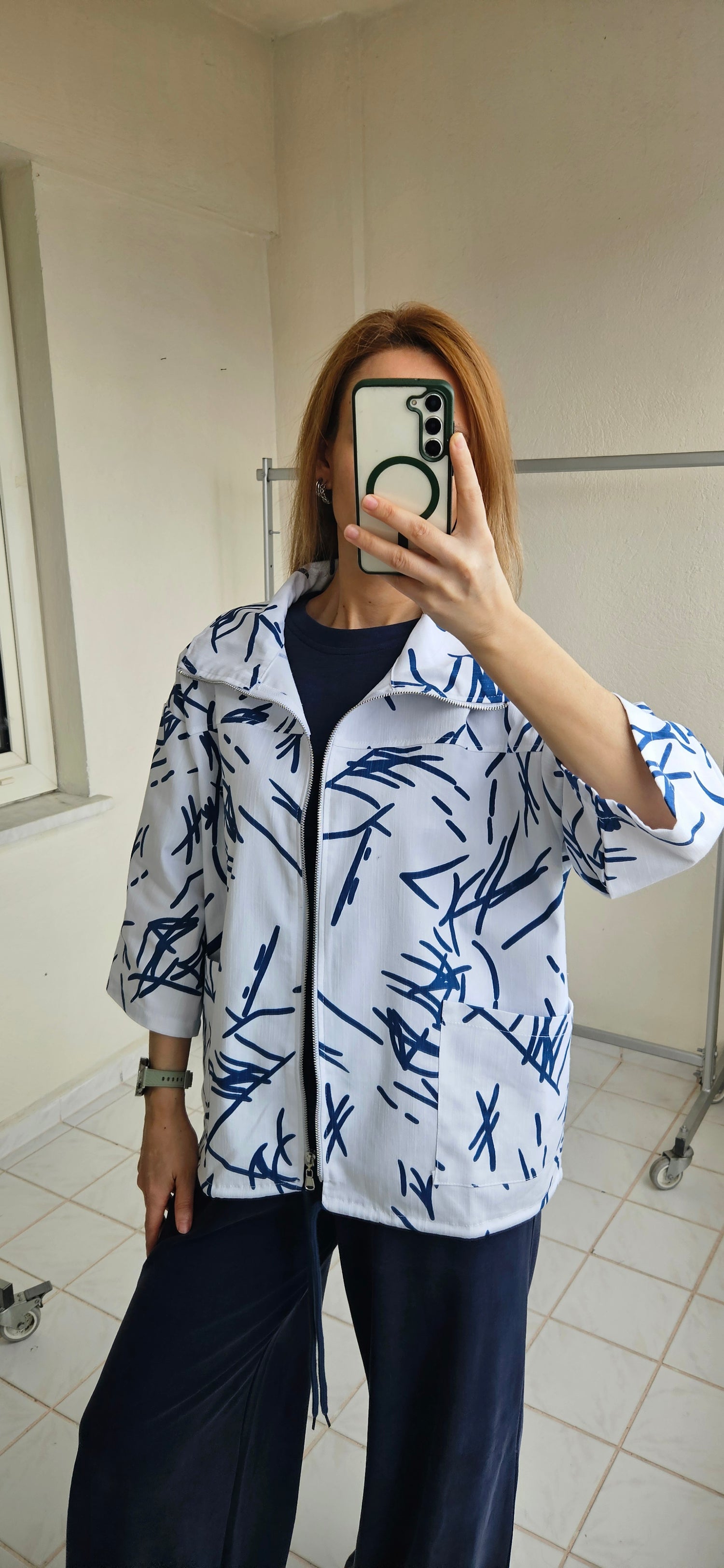 Nakışlı Uzun Kol Mavi Penye Sweat