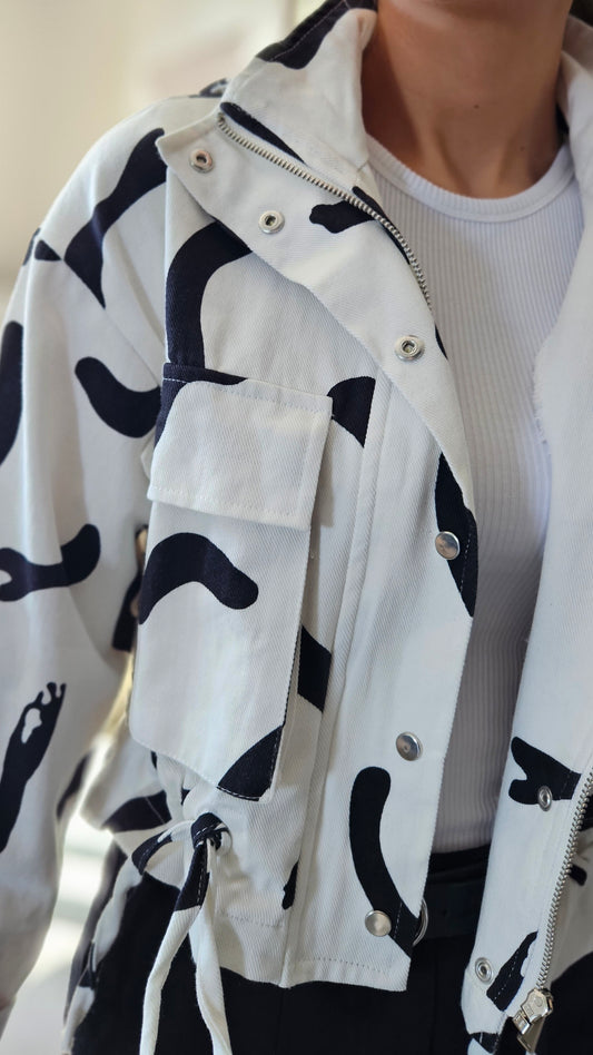 Zebra Desen Belden Büzmeli Kot Ceket