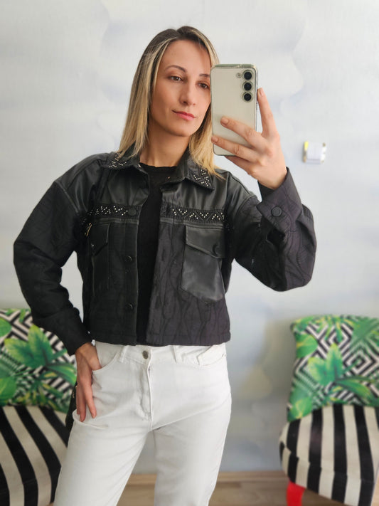Kapitone ve Deri Garnili Zımba Detaylı Ceket