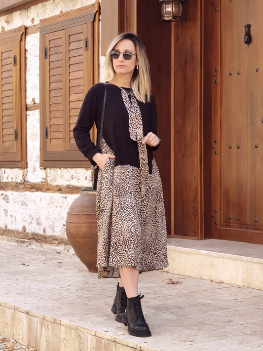 TükendiCepli Midi Boy Leopar Elbise