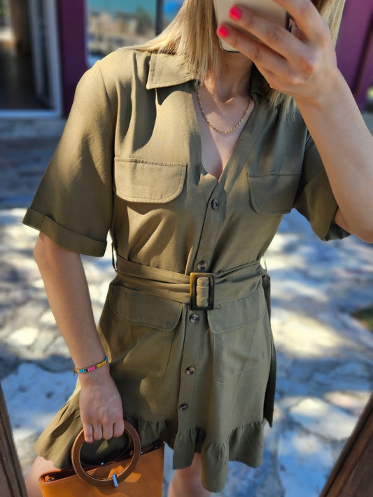 Önden Düğmeli ve Yakalı Şifon Elbise