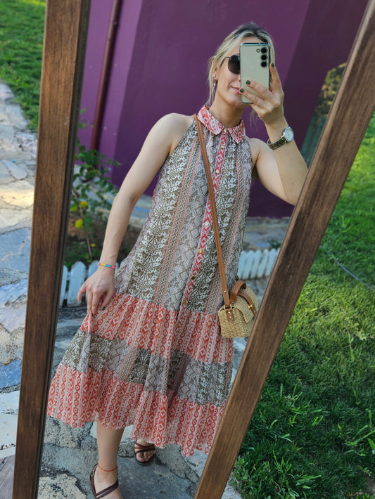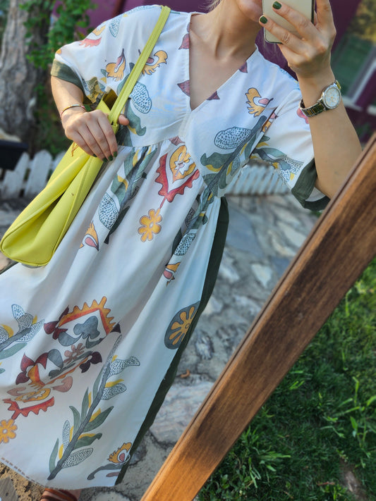 Orjinal Marka Karışık Desen Pamuk Keten Salaş Elbise