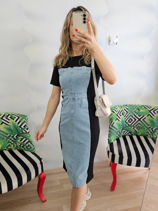 Keten Dokulu Karışık Desenli Elbise