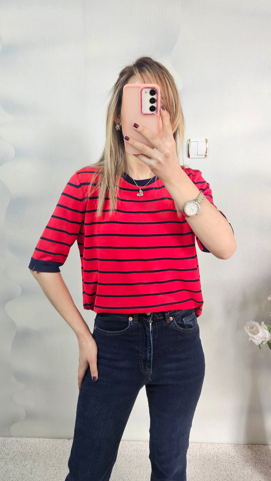 Lacivert Çizgili Kırmızı Kısakol Triko