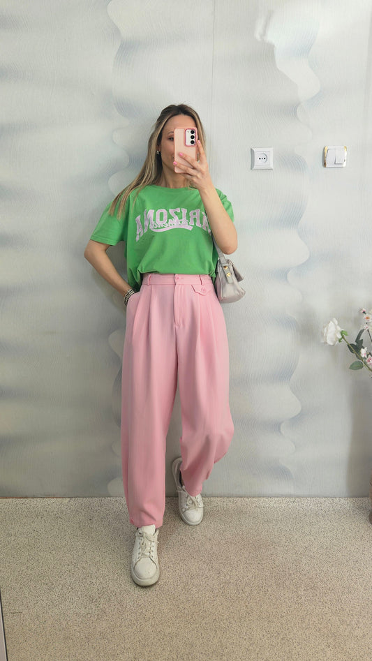 Yıkama Kumaş Önü Baskılı Pamuklu Kumaş Yeşil Tshirt
