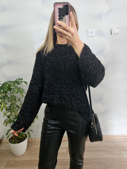 İçi Pırıltılı Yumuşak Siyah Kazak