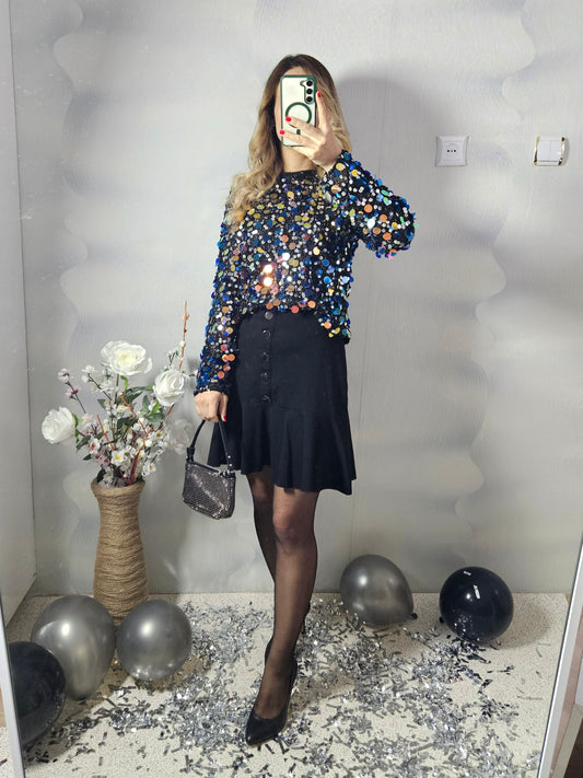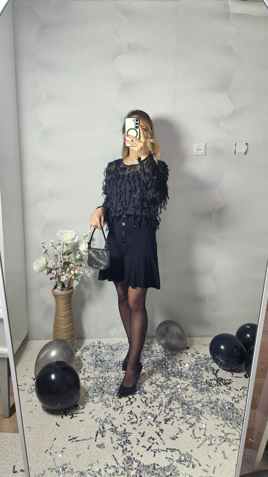 TükendiÜzeri Pul İşlemeli Siyah Bluz