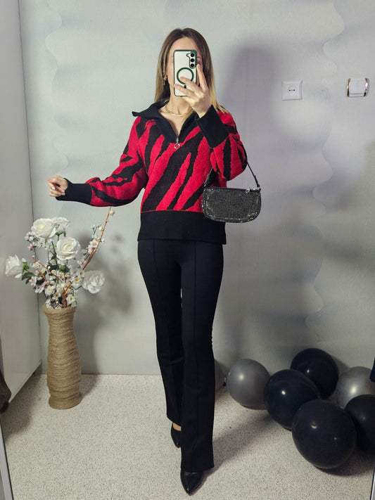 Fermuarli ve Yaka Detay Yumoş Kazak