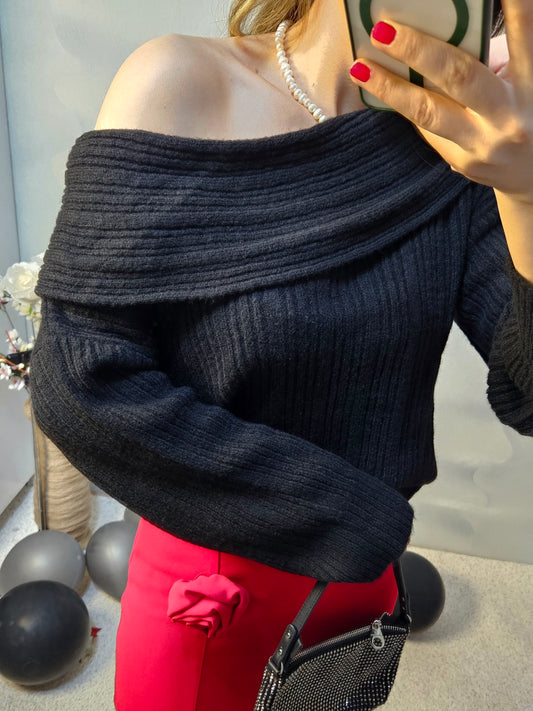 TükendiMadonna Yaka Yumoş Siyah Kazak