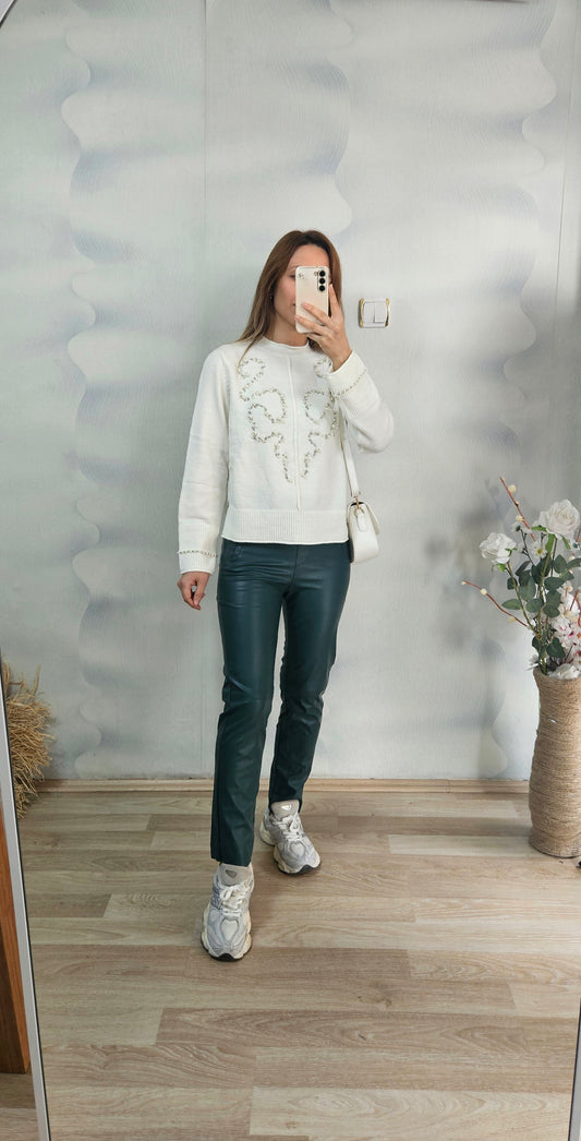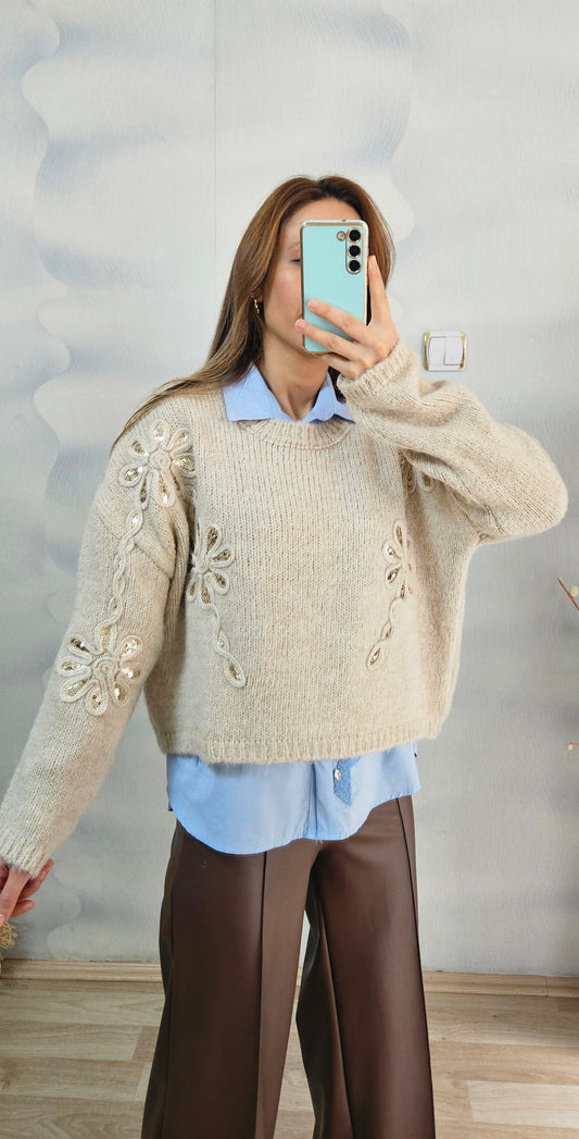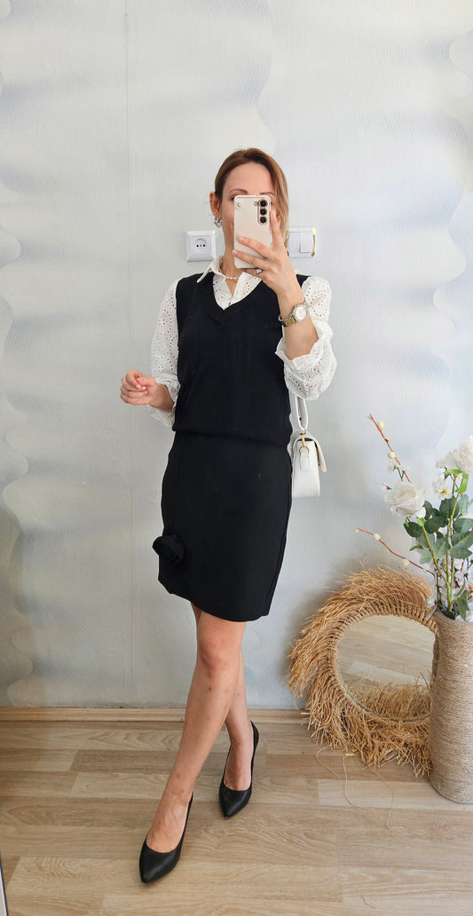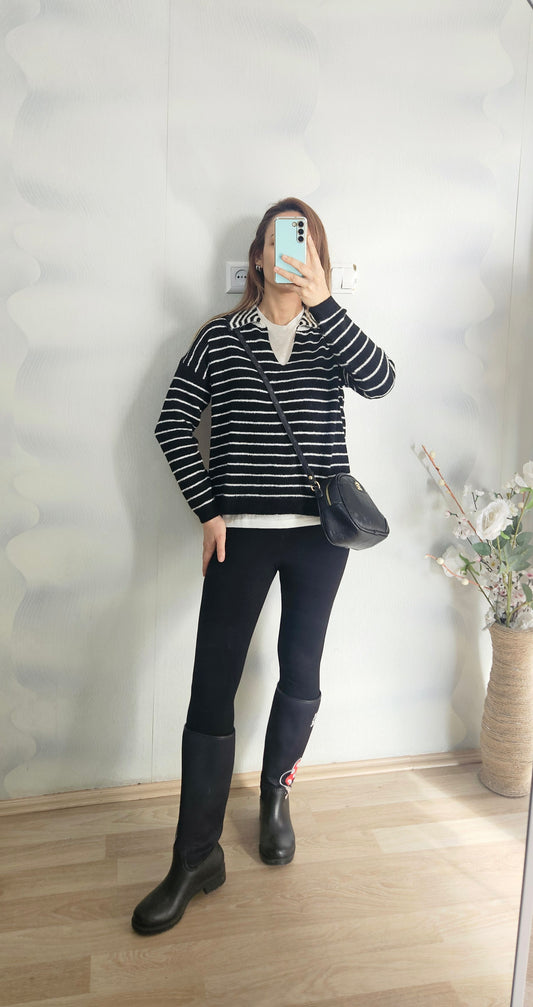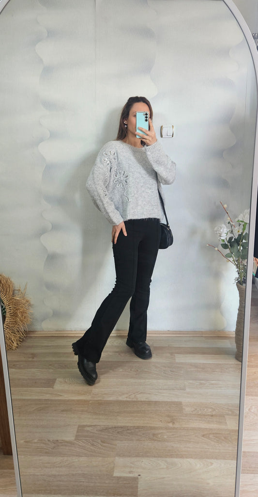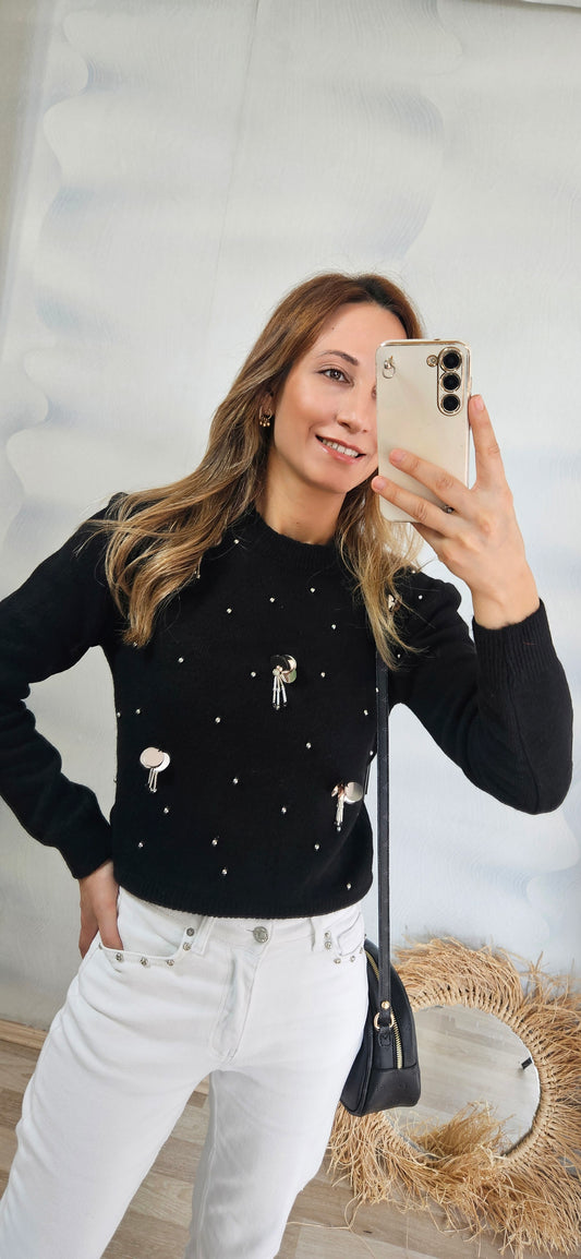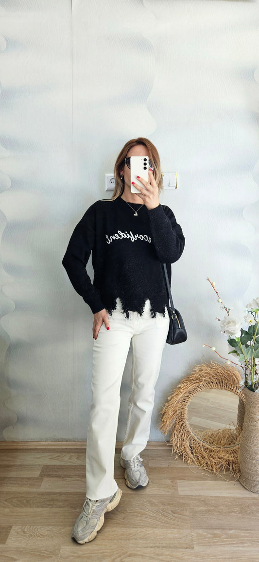 TükendiÜzeri Nakış Detaylı Siyah Kazak