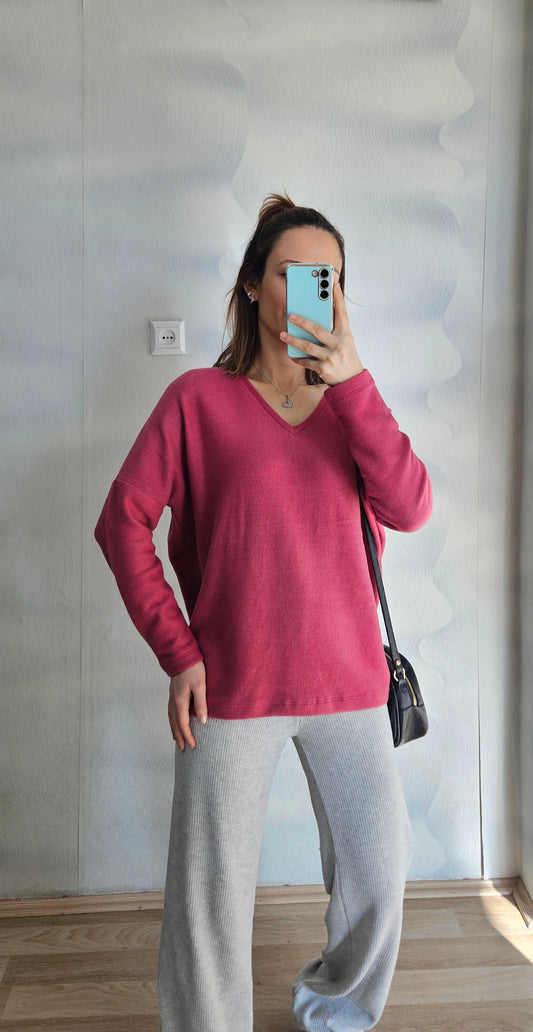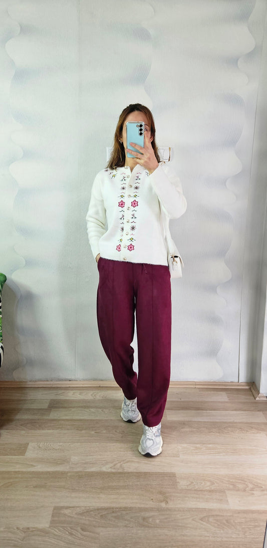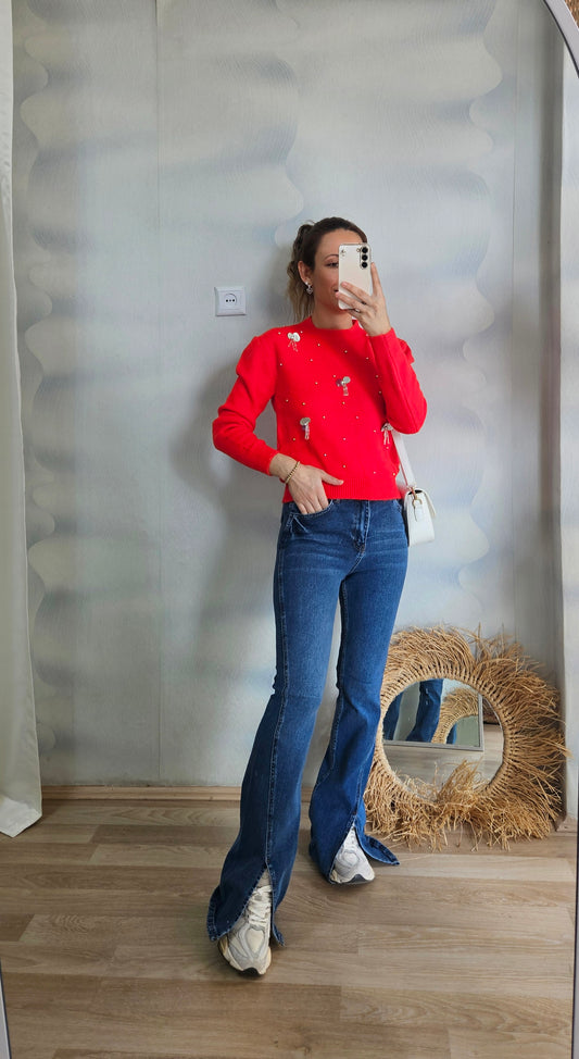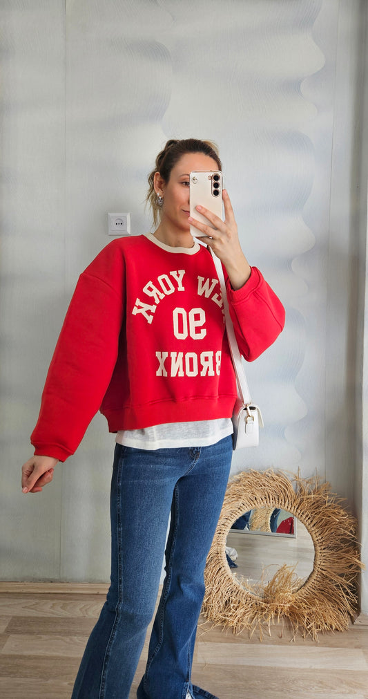 İçi Şardonlu Ekru Baskılı Kırmızı Sweat