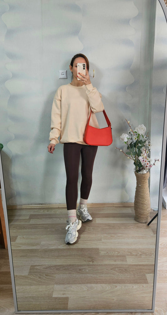 İçi Şardonlu Oversize Kalıp Sütlü Kahve Sweatshirt