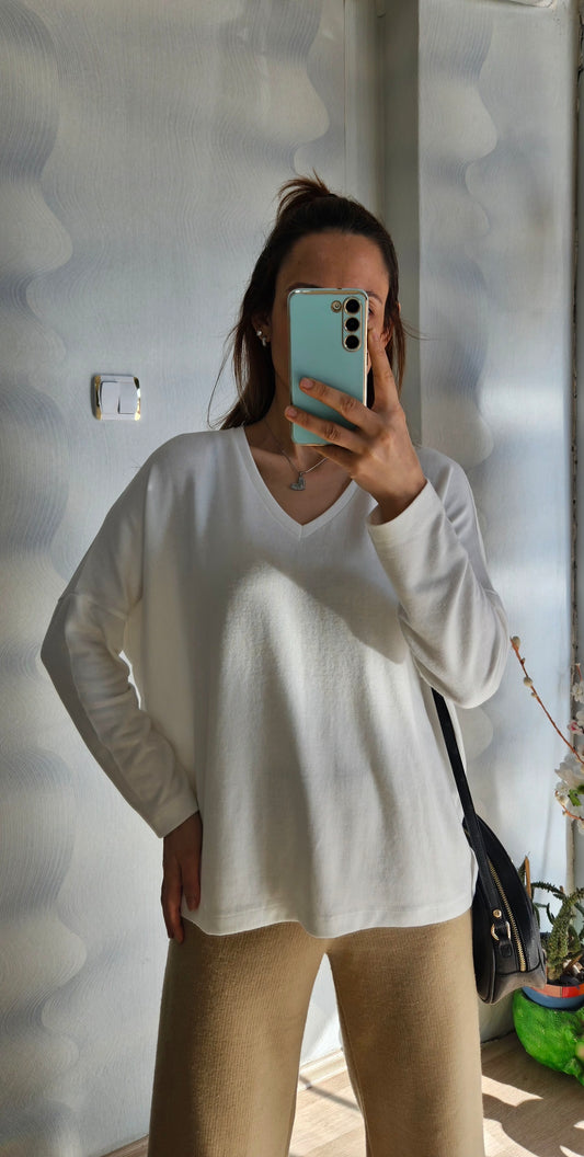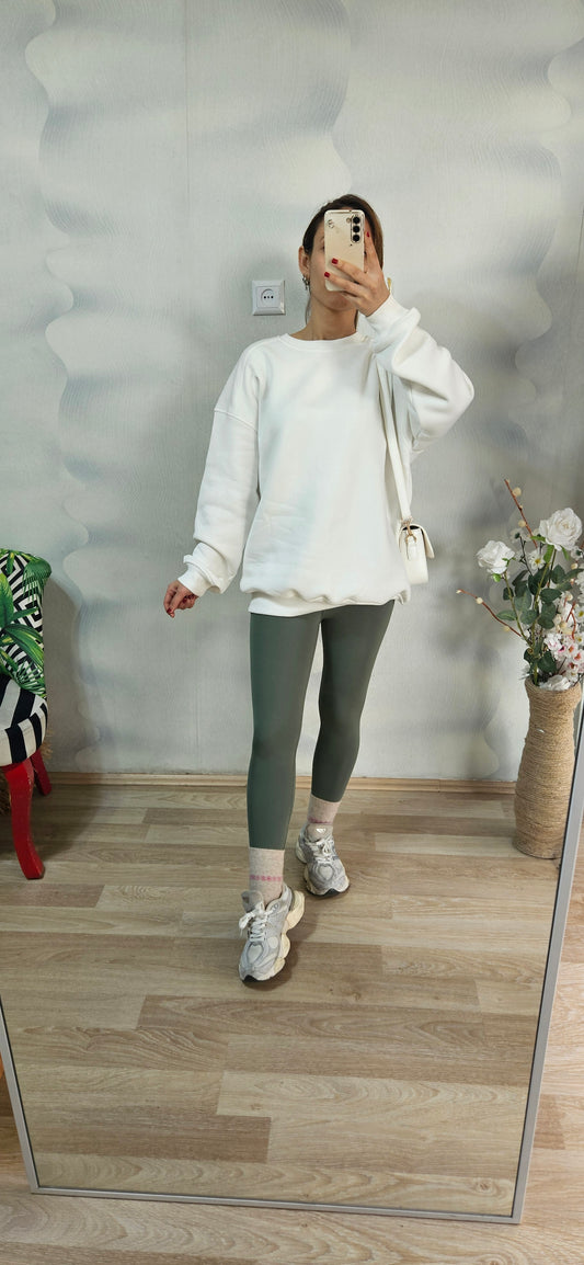 İçi Şardonlu Oversize Kalıp Ekru Sweatshirt