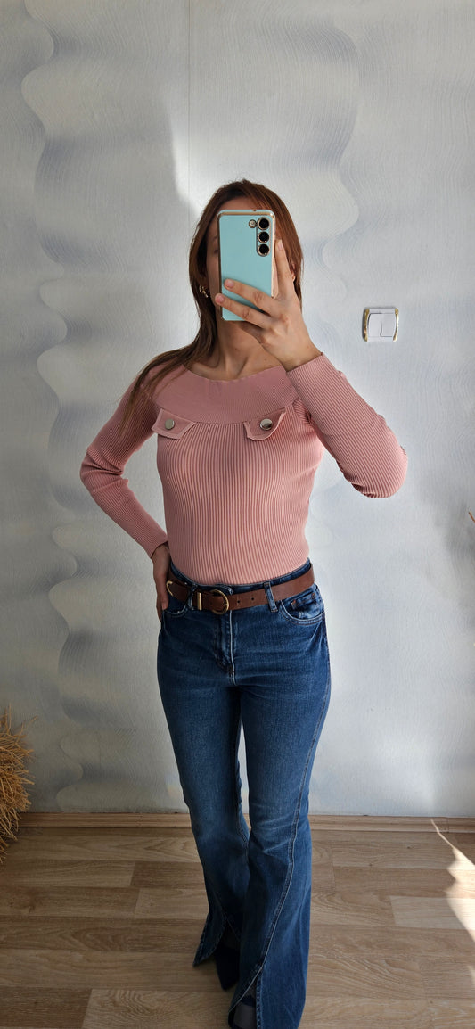 Kemer Boy Gold Düğme Detaylı Gül Kurusu Badi