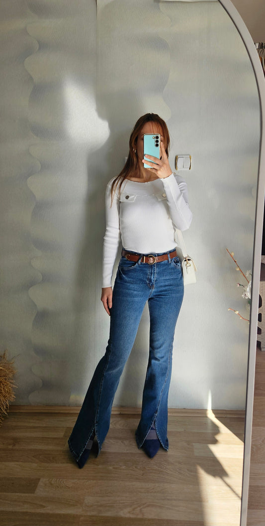 Kemer Boy Gold Düğme Detaylı Beyaz Badi